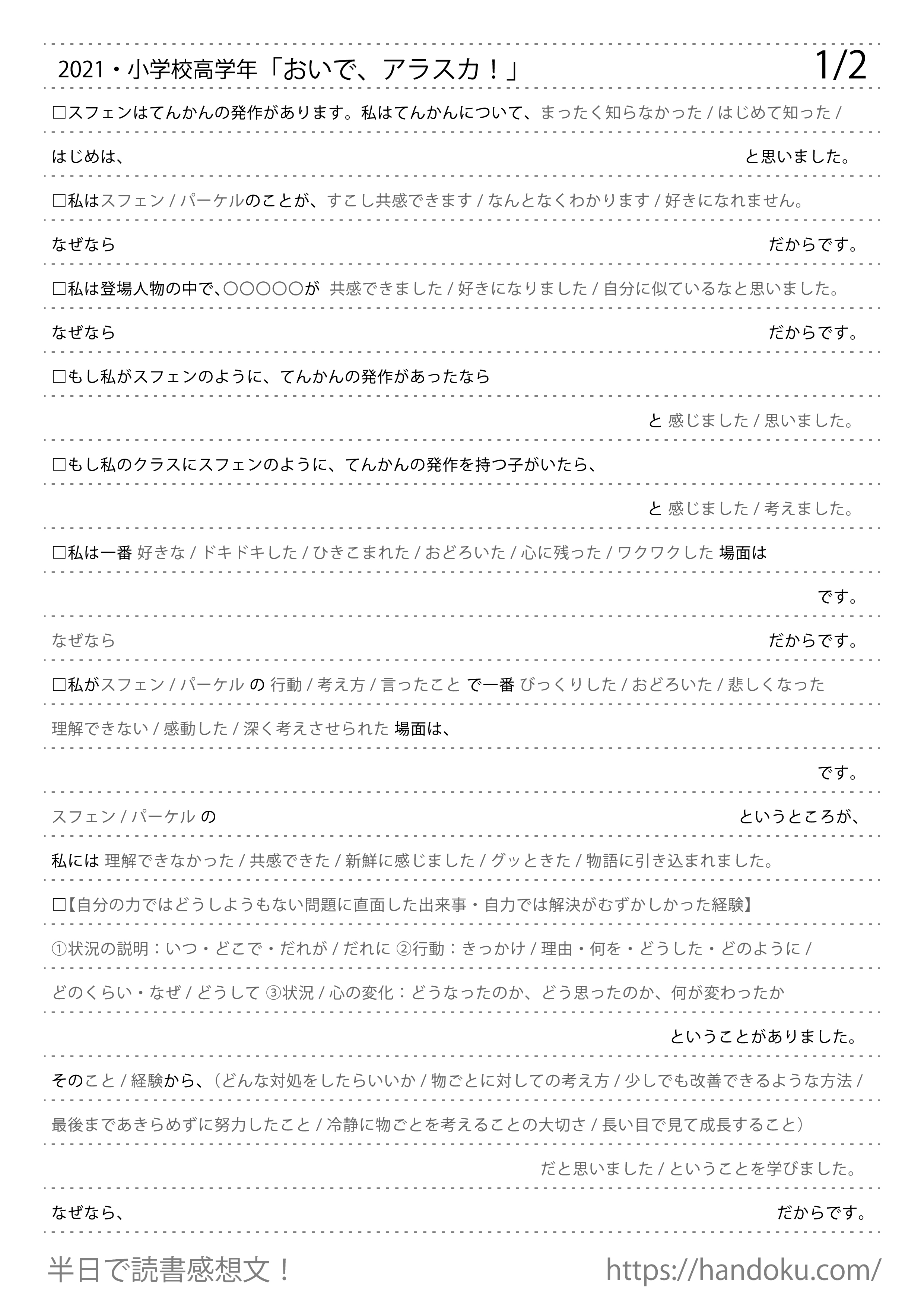 ※非推奨の「あとがきなどをちょっと読んで感想文を書くテンプレート」を