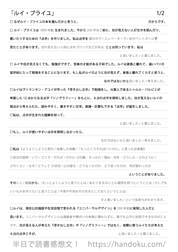 正直に「学習漫画ルイ・ブライユを読んで」と書く必要はありません!